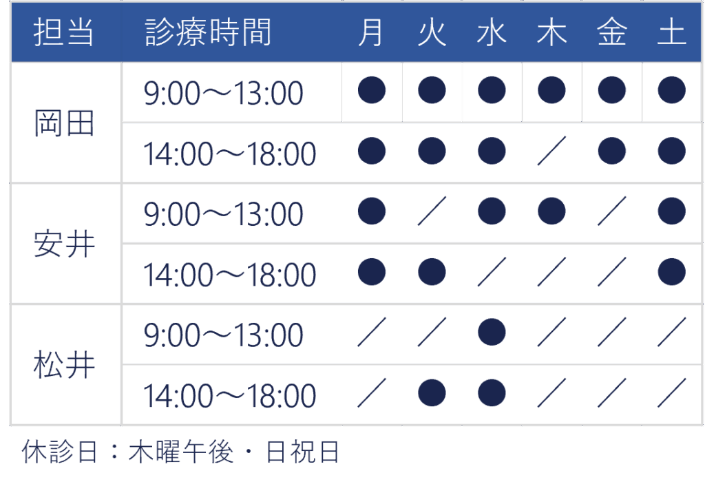 担当は火曜日(午後)・水曜日です。体制表はこちら - 事前のご予約がない当日の受診について